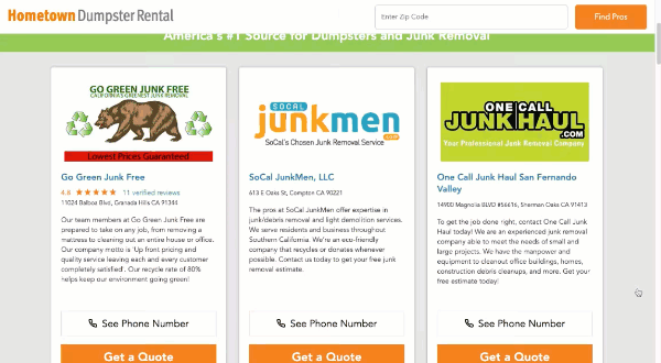 Next, enter your zip code to quickly see a list of junk removal companies serving your area.