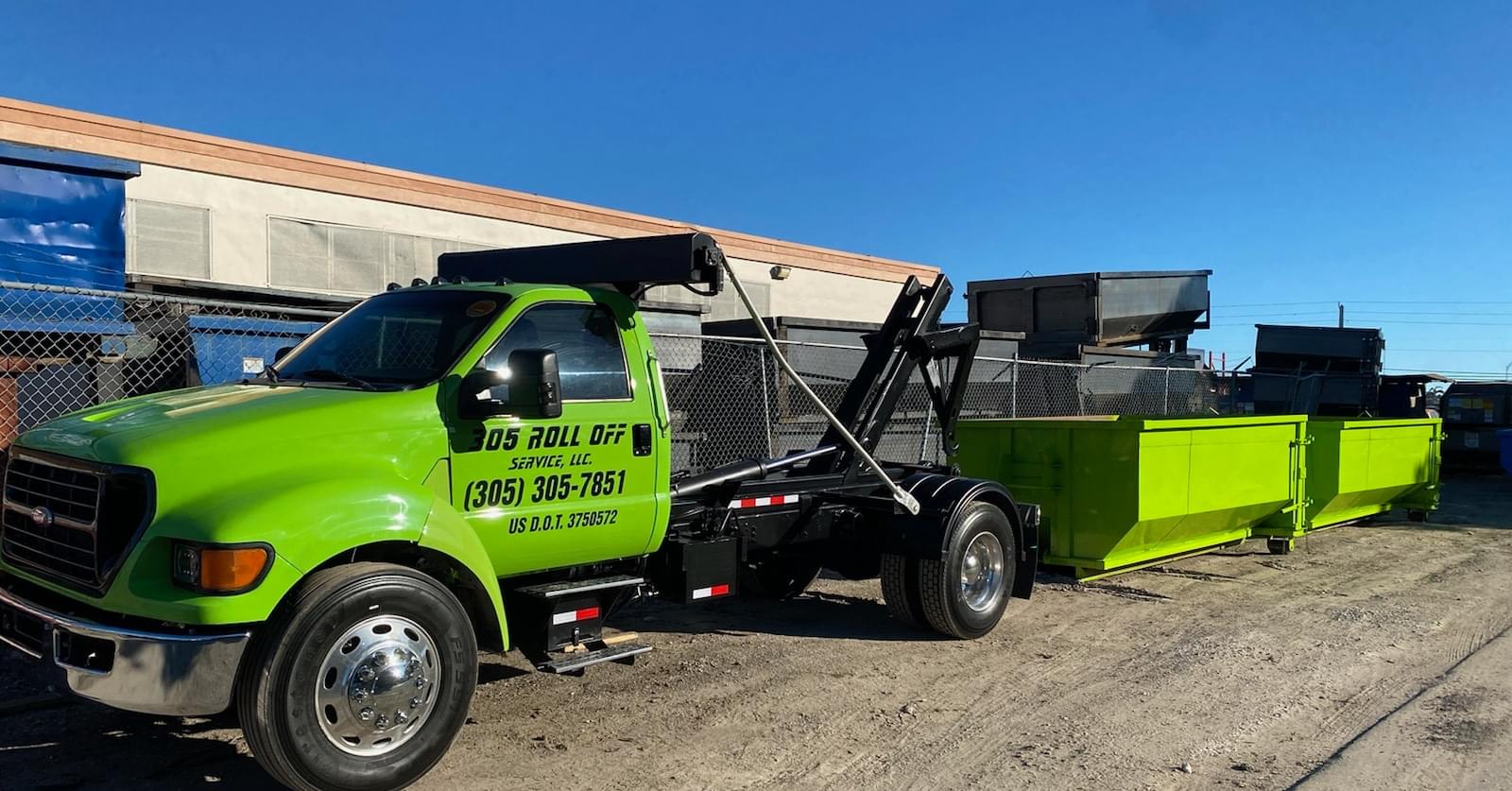 305 Roll Off Service, LLC is an independent family-owned waste hauling company with over 15 years of experience in the waste industry. We service residential and commercial customers from Pompano Beach south to Homestead, FL.We have small single axle trucks that don’t damage driveways and paver parking areas. All of our dumpsters are brand new and clean – not an eyesore! We offer same day and emergency dumpster rentals.We offer dumpster rentals for a day, 3 days, 30 days, or year-round. Choose from our 10-15 or 20-yard dumpsters at competitive rates. We also offer other services, including light demolition and aggregate material sales and handling.Contact us today for a free dumpster quote!