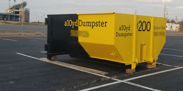 We stock 10 yard trailer dumpsters and roll-off containers (see photos). Contact us today to learn more and request a free dumpster quote.