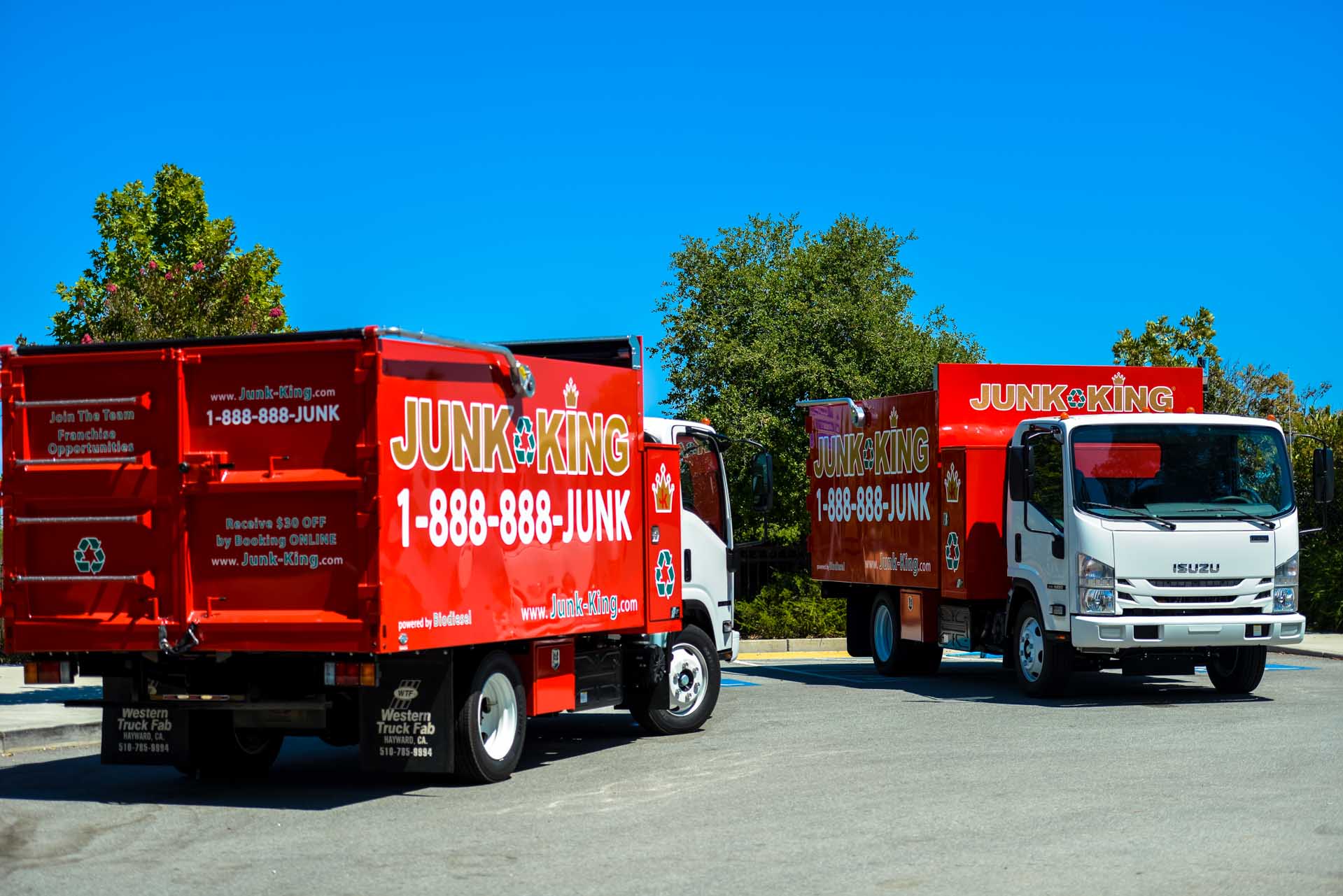 I have a WM bagster full of concrete, brick, lumber, and dirt from my backyard. It's in an alley and WM said they cannot get their boom truck maneuvered to pick it up so I needed to call another company. I chose Junk King and they did a great job. They were right on time and I would use them again if I have more junk to get rid of.