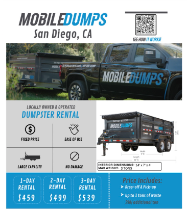Mobiledumps of San Diego CA is great to deal with, used them several times and will be sure to use them again. In the construction industry professionalism and reliability is key. And they absolutely deliver!