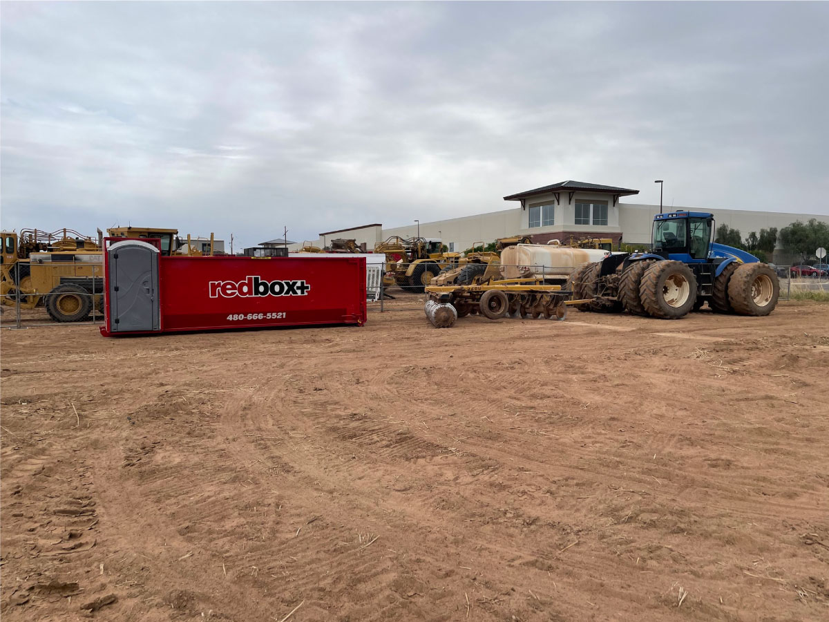 redbox+ Dumpsters of Phoenix Southeast Valley offers roll-off dumpster rental services to commercial building contractors and homeowners using a patented bin that includes 2 porta potties, so you get a complete waste management solution in a single delivery! Our specialized dumpsters provide contractors with a better, more reliable solution to two of their biggest waste management needs on the job. If you take a look at most construction sites, you'll almost always see a dumpster and a portable restroom located somewhere on the job site, and more often than not, both seem to be placed randomly–if not precariously–around the property. redbox+ Dumpsters of Phoenix Southeast Valley exists because we solve this problem, not only with our patented roll-off dumpster and portable toilet combination, but also with our commitment to delivering exceptional service with every one of our dumpsters.Get in touch with us today for a free quote!