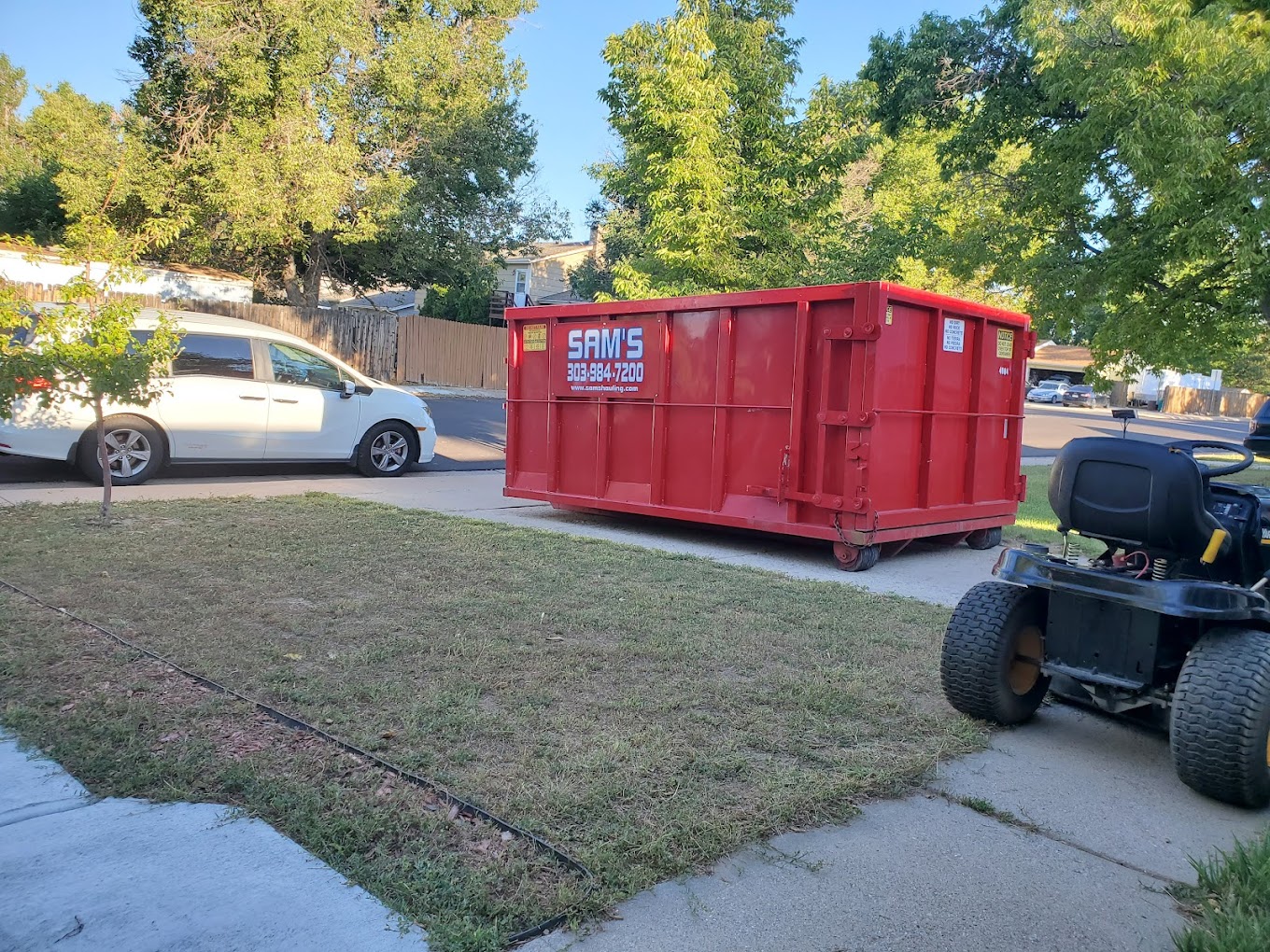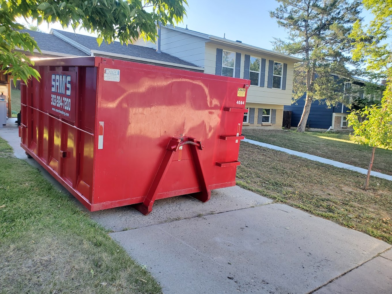 The guy from Sam's Hauling showed up on time. I was actually outside watching the guy as he started to put the dumpster into the next-door neighbor's driveway. I stopped him, and we had a good laugh about it. The 12-yard I rented out for 2 weeks was usable, and everything was good.