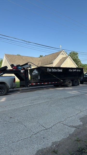 The Extra Hand is a locally owned dumpster rental and junk removal company dedicated to simplifying waste management for homeowners, contractors, and businesses across Central Texas. Based in Waco, we offer a variety of dumpster sizes, including 13, 17, and 18 yard roll-offs, along with dump trailers and utility trailers to accommodate projects of any scale. As a veteran owned and operated company, we're committed to exceeding customer expectations and take pride in our reputation. Our team provides a personal approach to each and every dumpster rental, ensuring that your property and project is in good hands.Whatever cleanup you're facing, let The Extra Hand deliver a reliable, driveway-friendly dumpster to your location when you need it.